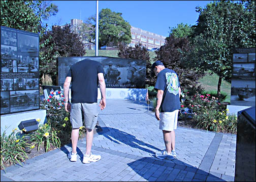 Tom and Bruce looking at bricks on the Memorial's "Walk of Honor".